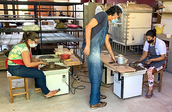 Zenkoji has been working to set up a pottery school for more than ten years, collecting donations for building costs, equipment, tools, and materials, and searching for people and other resources to teach pottery techniques. In 2009, we established the “Kanzeon Ceramics Center.” The first eleven students were from the Brazilian government’s Educação dos Jovens e Adultos (EJA), which is a group of people who were not educated in a timely manner and women who live in the surrounding area. Later on, the number of participants increased to 25, not only from the neighborhood of the pottery center, but also from three nearby cities (Aracruz, Hundon, and John Neiva). In this way, the pottery center is becoming the center of pottery production not only in the surrounding villages but also in the province of Espirito Santo.