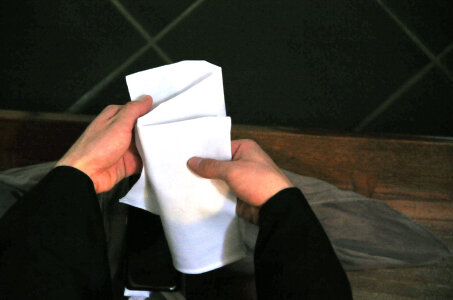 Next, unfold wiping cloth (apron cloth) and cover knees.